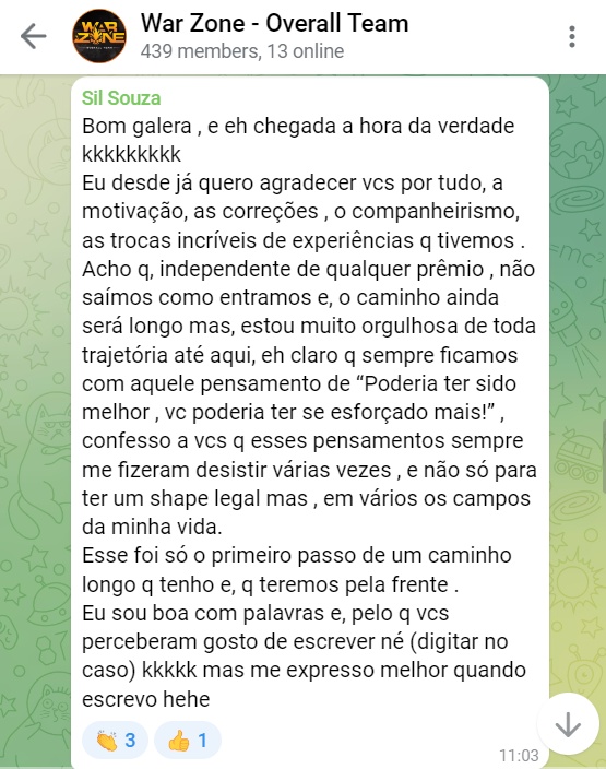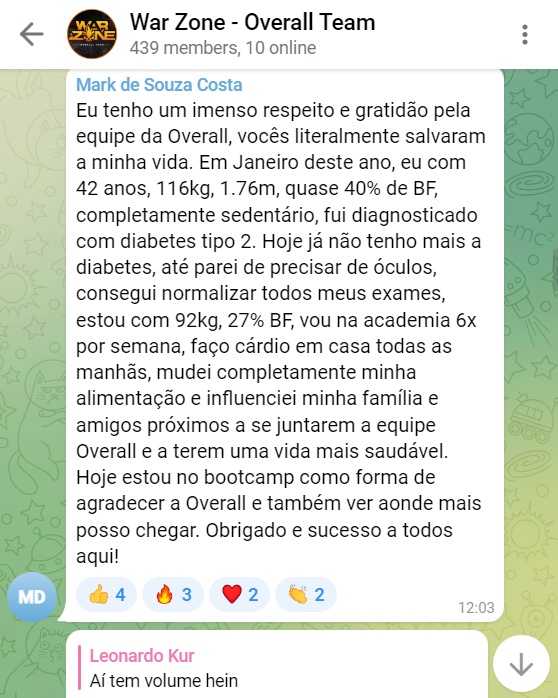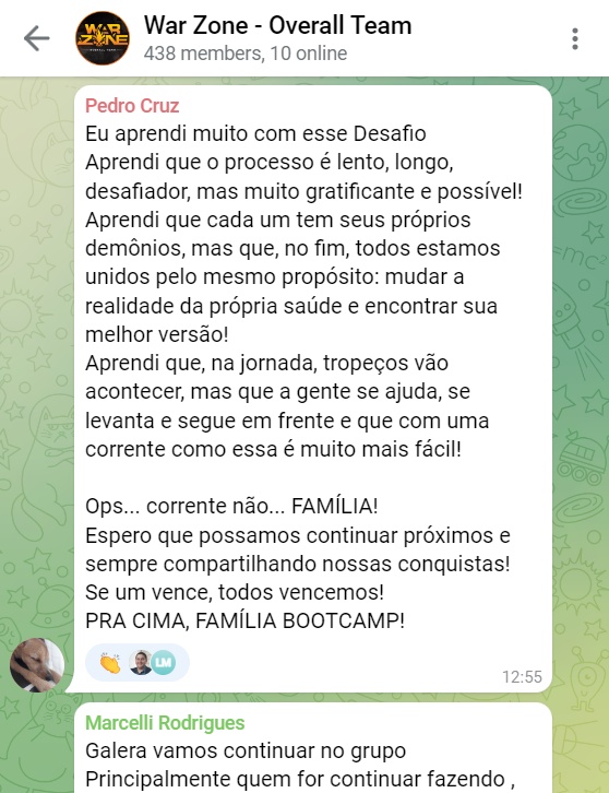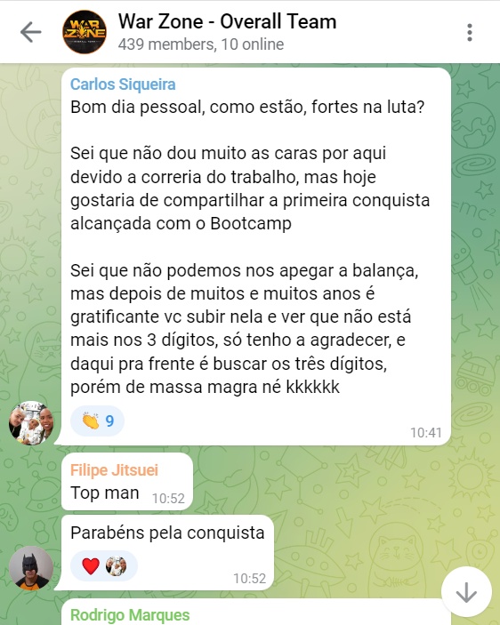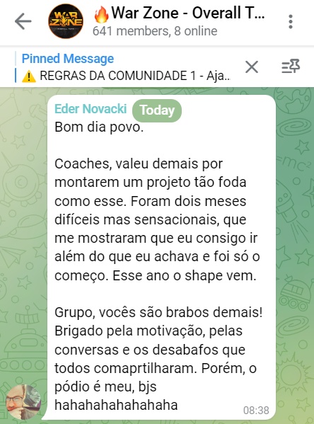 E quando você se coloca em um ambiente assim, o padrão muda. Porque a disciplina coletiva sustenta resultado individual.